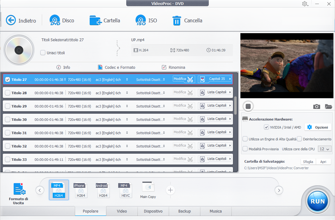 Converti DVD in MP4 HEVC / H.264, AVI, MKV, MOV, formato per iPhone, iPad, Android, ecc. Sono disponibili anche 6 diversi metodi per copiare e salvare vecchi / nuovi DVD mantenendo alta qualità.