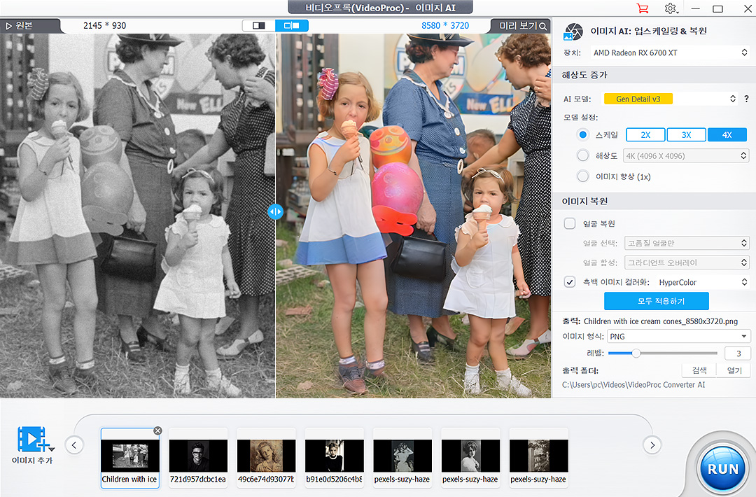 AI 해상도 증가 여러분의 동영상의 해상도와 화질을 한 단계 업그레이드 해 줍니다. 단 한 번의 클릭만으로 더 상세한 디테일을 만들며 동영상을 개선시키고, 저해상도 영상을 4K로 업스케일링하며, 동영상 내 흔들림, 노이즈, 입자, 픽셀 제거가 가능합니다.
