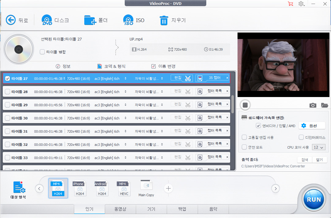 실시간 최대 47배 빨라진 속도를 즐겨보세요! VideoProc의 독보적인 기술은 파일 크기와 출력 비디오 품질을 최적화하면서 비디오 트랜스 코딩 및 처리를 더욱 가속화할 수 있습니다.